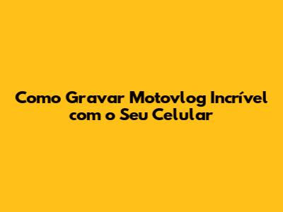 Como Gravar Motovlog Incrível Com O Seu Celular