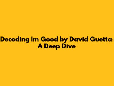 Decoding 'I'm Good' by David Guetta: A Deep Dive