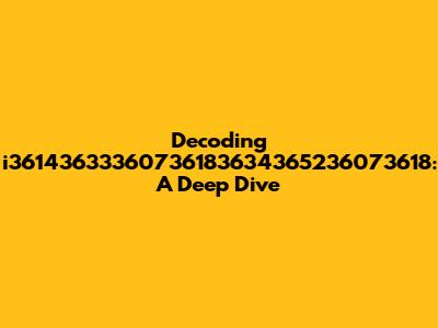 Decoding I36143633360736183634365236073618: A Deep Dive