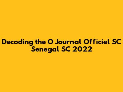 Decoding The O Journal Officiel SC Senegal SC 2022