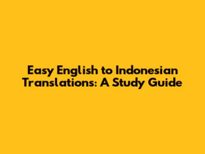 Easy English To Indonesian Translations: A Study Guide