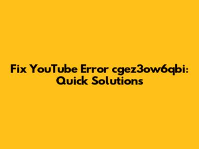Fix YouTube Error Cgez3ow6qbi: Quick Solutions