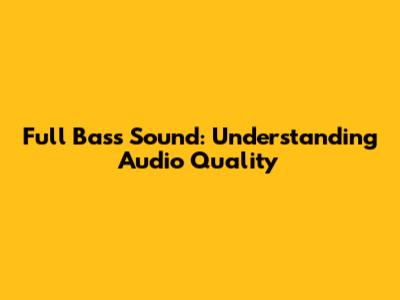 Full Bass Sound: Understanding Audio Quality