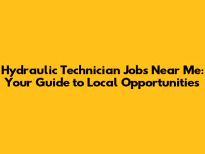 Hydraulic Technician Jobs: Find Local Opportunities Now