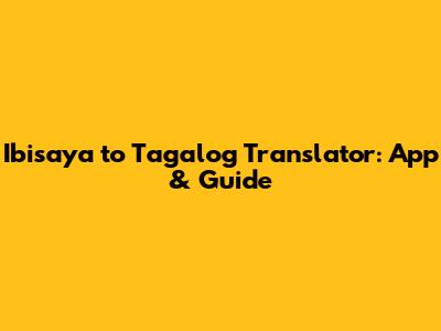 Ibisaya To Tagalog Translator: App & Guide
