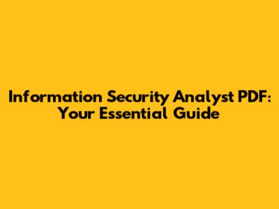 Information Security Analyst PDF: Your Essential Guide