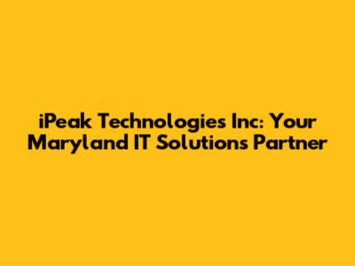 IPeak Technologies Inc: Your Maryland IT Solutions Partner