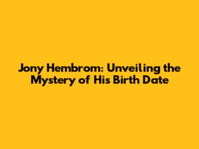 Jony Hembrom: Unveiling The Mystery Of His Birth Date