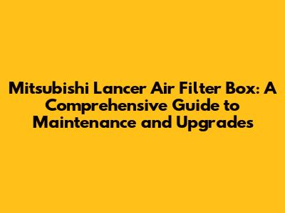 Mitsubishi Lancer Air Filter Box: Maintenance & Upgrade Guide