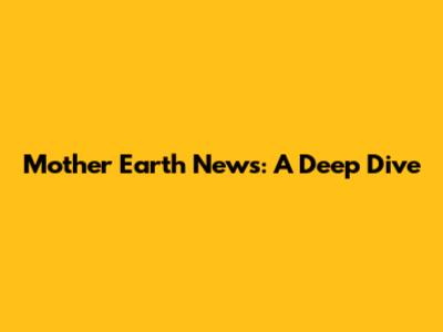 Mother Earth News: A Deep Dive