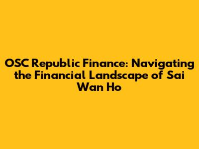 Understanding OSC Republic's Role in Sai Wan Ho Finance