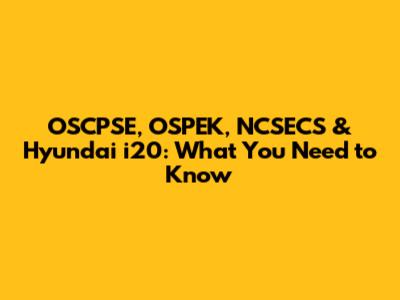 OSCPSE, OSPEK, NCSECS & Hyundai I20: What You Need To Know