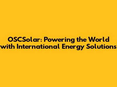 OSCSolar: International Energy Solutions & Innovations