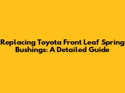 Replacing Toyota Front Leaf Spring Bushings: A Detailed Guide