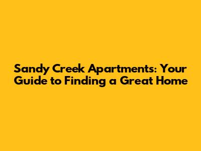 Sandy Creek Apartments: Your Guide To Finding A Great Home