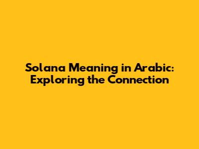 Solana Meaning In Arabic: Exploring The Connection
