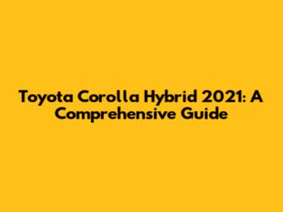 Toyota Corolla Hybrid 2021: Your Comprehensive Guide
