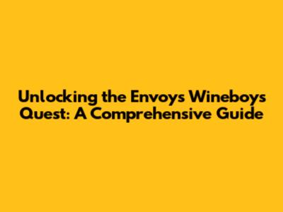 Unlocking The Envoy's Wineboys Quest: A Comprehensive Guide