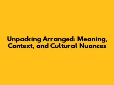 Unpacking 'Arranged': Meaning, Context, And Cultural Nuances